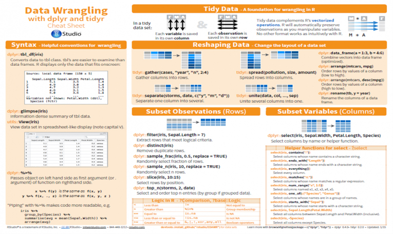 R는 다양한 방법으로 배울 수 있다. 영어가 어렵지 않다면, 공식 문서만 참고해도 어느 정도는 배울 수 있다. 데이터캠프 사이트에서 튜토리얼을 진행하며 강의를 듣는 것도 좋은 방법이다. 간단하게 함수의 사용법을 설명한 공식 치트시트를 참고해도 좋다. 치트시트는 영어를 잘 못 해도 그림으로 설명을 보조하기 때문에 이해가 어렵지 않다.